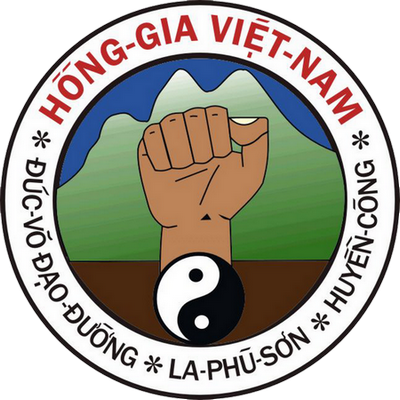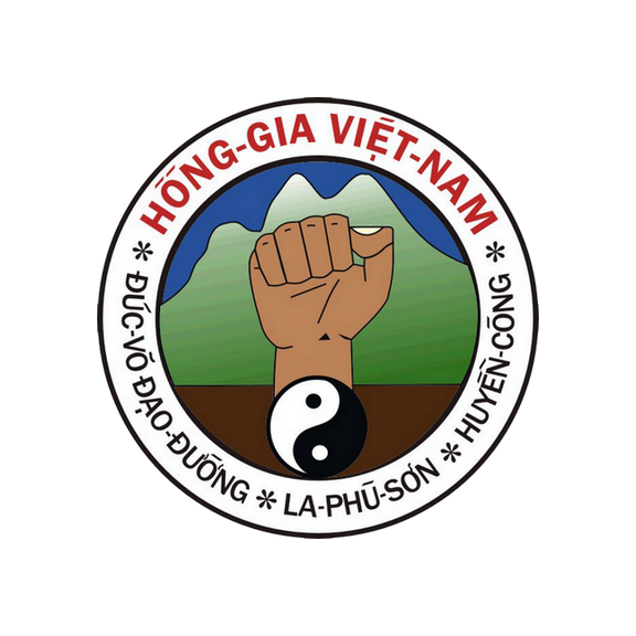 В школе Hong-Gia Vietnam есть своя эмблема, которая по преданию появилась в 16 веке и выражает дух школы. Раньше вместо слова «Vietnam» писали «Quyen» (кулак). Данную эмблему создавали несколько поколений мастеров. Вы видите, что ее основным символом является кулак, в основании которого философский круг инь-ян. Фоном служит изображение трехглавой горы Ло Фу.